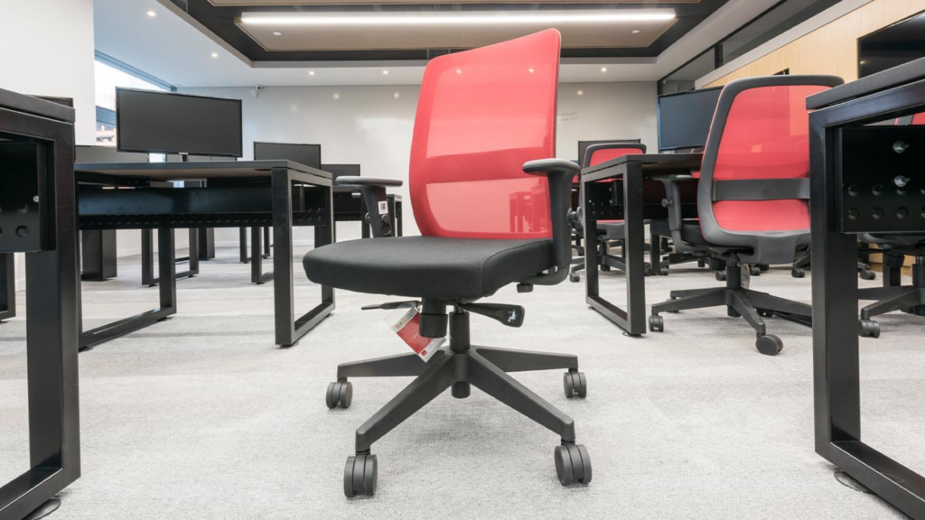 Sistema de Regulagem Ergonômica (SRE) que permite ajustes personalizados da cadeira, adaptando altura, inclinação e apoio conforme a necessidade do usuário, garantindo mais conforto, postura adequada e eficiência no uso diário.