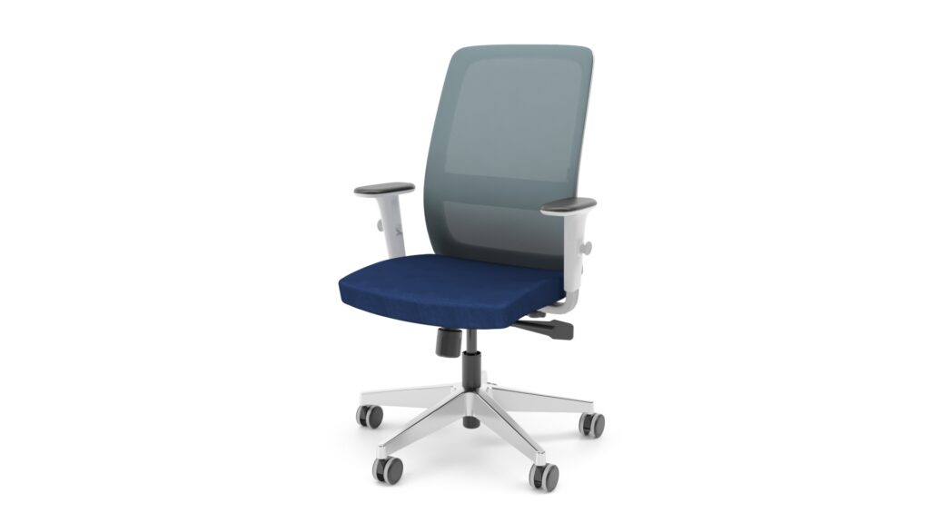 Sistema Syncron com mecanismo inteligente que coordena o movimento simultâneo entre encosto e assento, permitindo reclinação suave e equilibrada. Esse recurso acompanha os movimentos naturais do corpo, reduzindo a tensão muscular e garantindo mais conforto e ergonomia ao longo da jornada de trabalho.