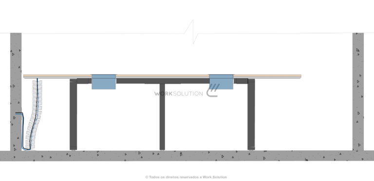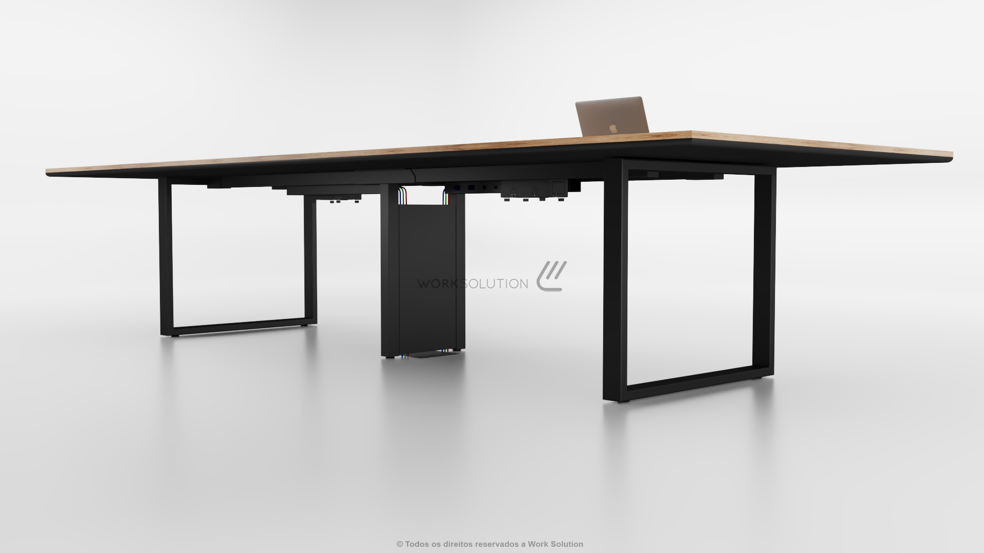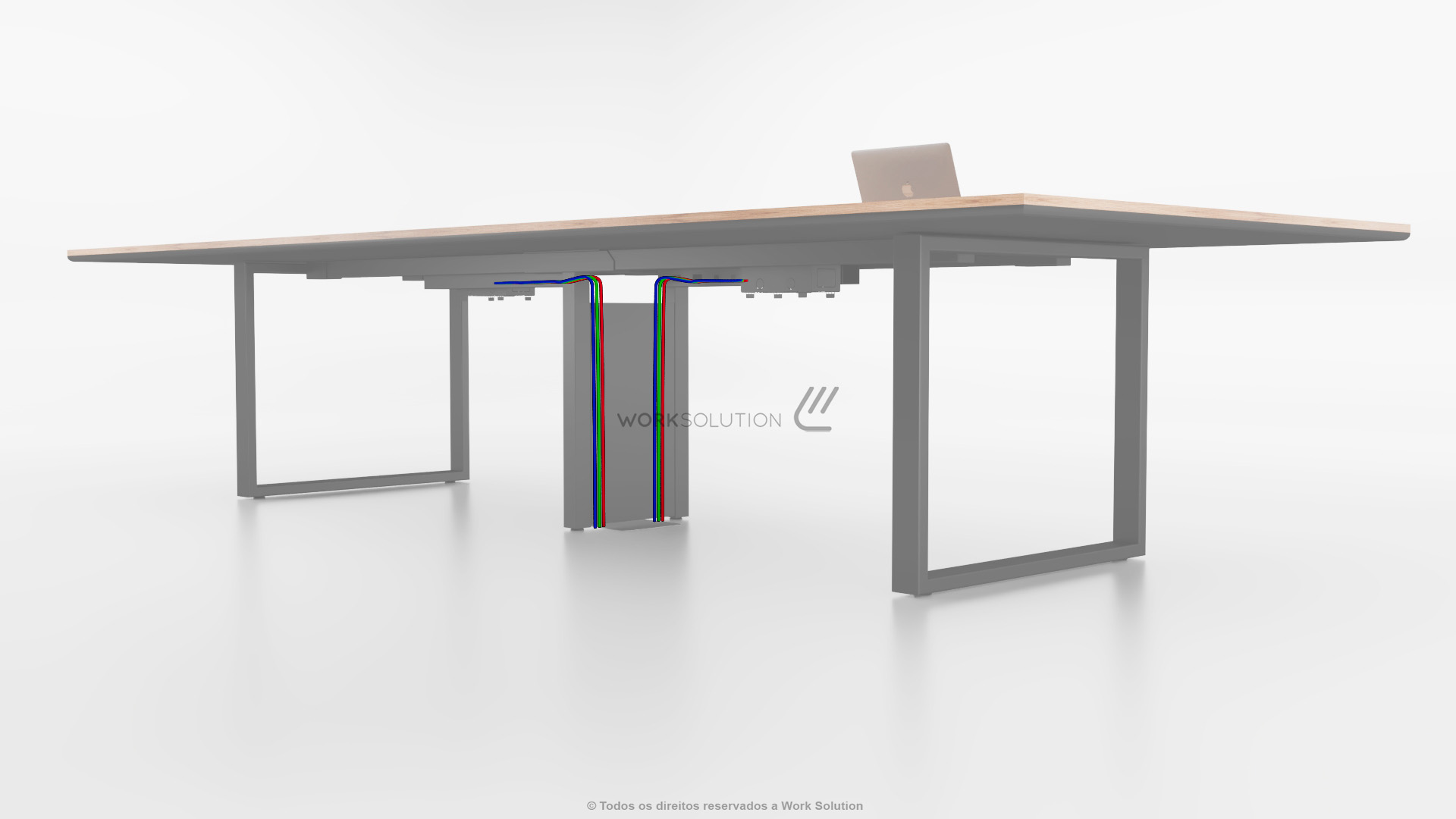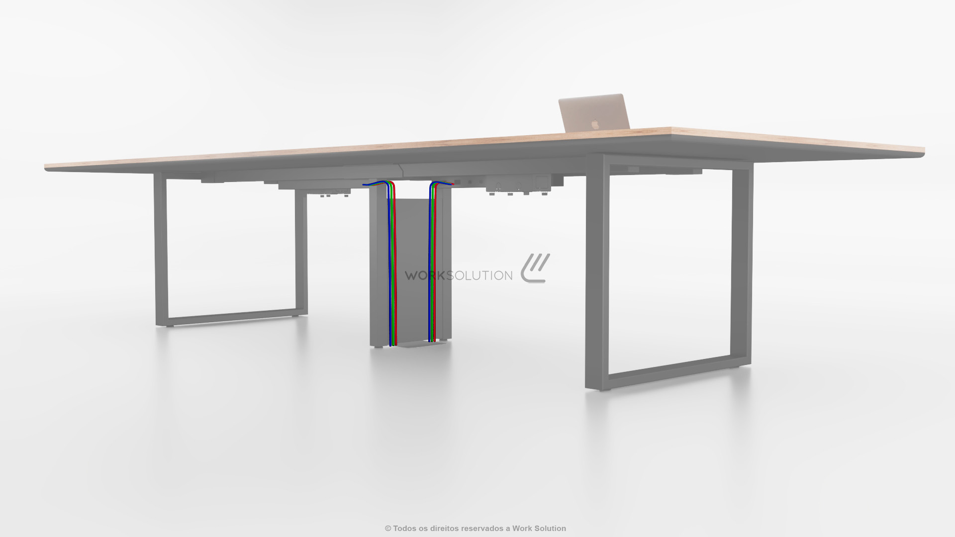 Em uma mesa para diretoria não faria sentido ter tantos recursos e deixar de lado um dos pontos que mais preocupa quem vai comprar. Será que tem solução para subida de cabeamento? Nosso produto tem