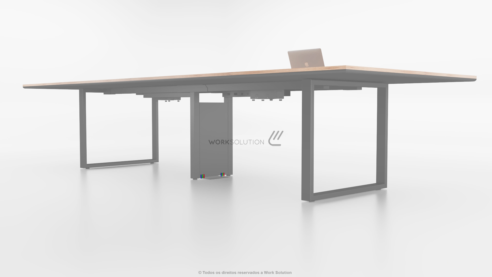 Simule o funcionamento scrollando o botão do mouse.Nesse caso, o acesso do cabeamento até a caixa de conectividade é via shaft central.Dependendo do modelo da mesa, o acesso do cabeamento pode ser via vértebra
